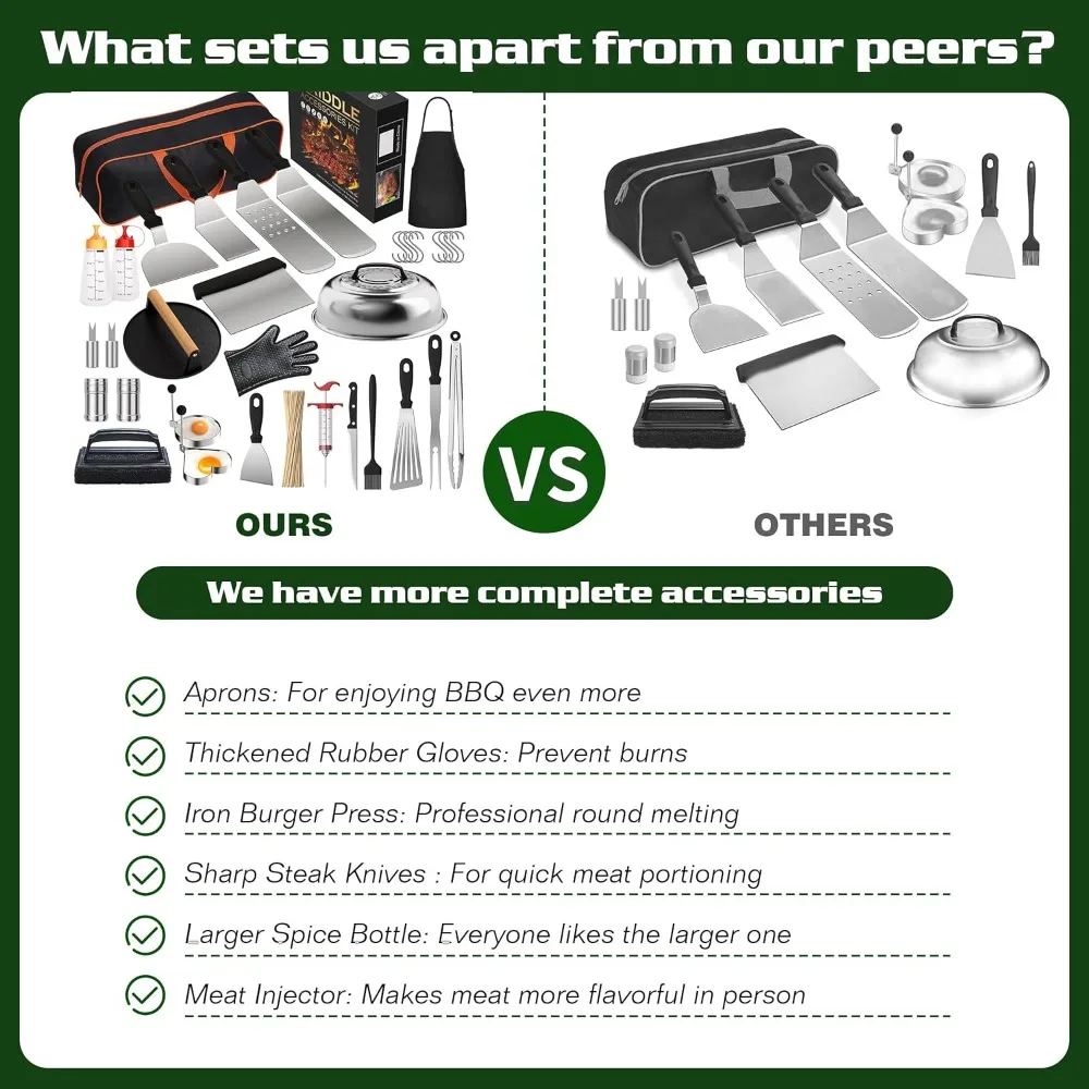 The 134-Piece Griddle Tool Set is the ultimate collection for mastering your outdoor cooking experience. Designed for flat top grills and compatible with popular models like Blackstone, this kit includes everything you need for backyard BBQ success. From sturdy spatulas and scrapers to a durable burger press and melting dome, each tool is crafted to enhance performance and convenience. The high-quality materials provide strength, heat resistance, and long-lasting durability. Perfect for flipping burgers, searing steaks, sautéing vegetables, and preparing breakfast favorites. The included dome helps melt cheese evenly and speed up cooking times. Ergonomic handles offer comfortable grip and precise control while cooking. Whether you’re hosting a backyard gathering, camping, or tailgating, this set keeps all your essential tools organized and ready. Easy to clean and built for repeated use, it simplifies outdoor meal prep. Complete, versatile, and reliable, this griddle accessory kit is a must-have for every BBQ enthusiast.