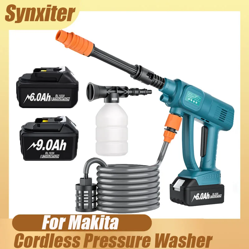 This cordless pressure washer gun is designed for efficient home and outdoor cleaning tasks. Compatible with Makita 18V BL1830 batteries, it offers powerful and portable performance without cords. The high-pressure water spray effectively removes dirt from cars, patios, and outdoor surfaces. Its lightweight design makes handling easy during extended cleaning sessions. Ideal for car washing, garden watering, and household cleaning applications. The electric water spray gun delivers consistent pressure for reliable results. Durable construction ensures long-lasting use in various environments. Simple operation allows quick setup and easy control. The compact size makes storage and transport convenient. This washer gun is a practical power tool for home, garden, and car cleaning needs.