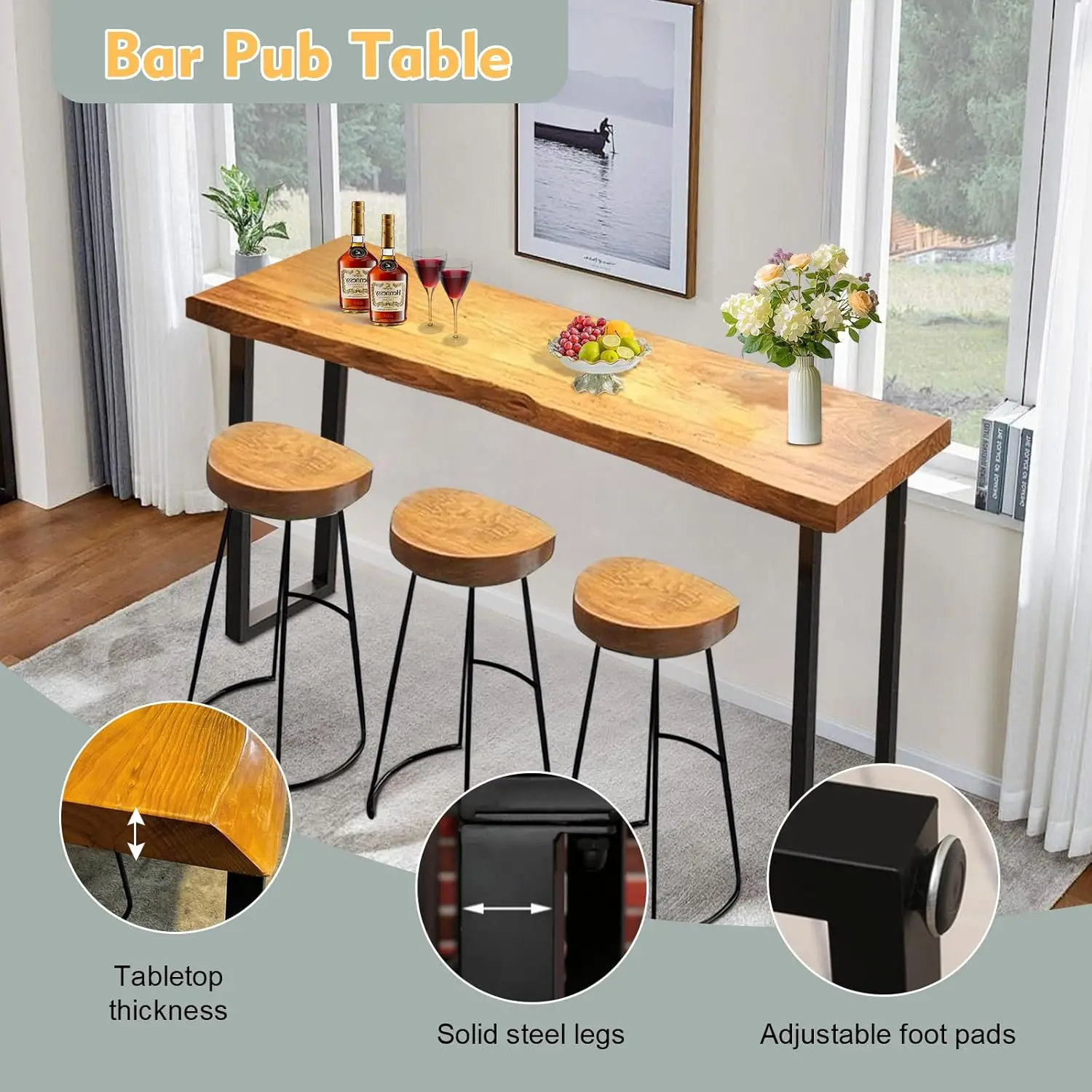 This narrow bar table features a sleek rectangular design that fits perfectly in compact spaces while offering practical dining and entertaining functionality. With a 47.2-inch bar height, it is ideal for use as a pub table, kitchen bar, or bistro dining surface. Crafted with a sturdy wood tabletop, it provides a durable and stable area for meals, drinks, or casual gatherings. The tall profile makes it suitable for pairing with bar stools or counter-height seating. Its clean lines and minimalist style blend effortlessly with modern, industrial, or contemporary interiors. Designed for versatility, it works well in kitchens, dining areas, cafés, or home bars. The narrow width maximizes floor space without sacrificing usability. Customizable options allow you to tailor the table to your specific space and style needs. Easy to integrate into small apartments or open layouts, it enhances both function and visual appeal. This bar-height table is a stylish solution for everyday dining and social occasions.