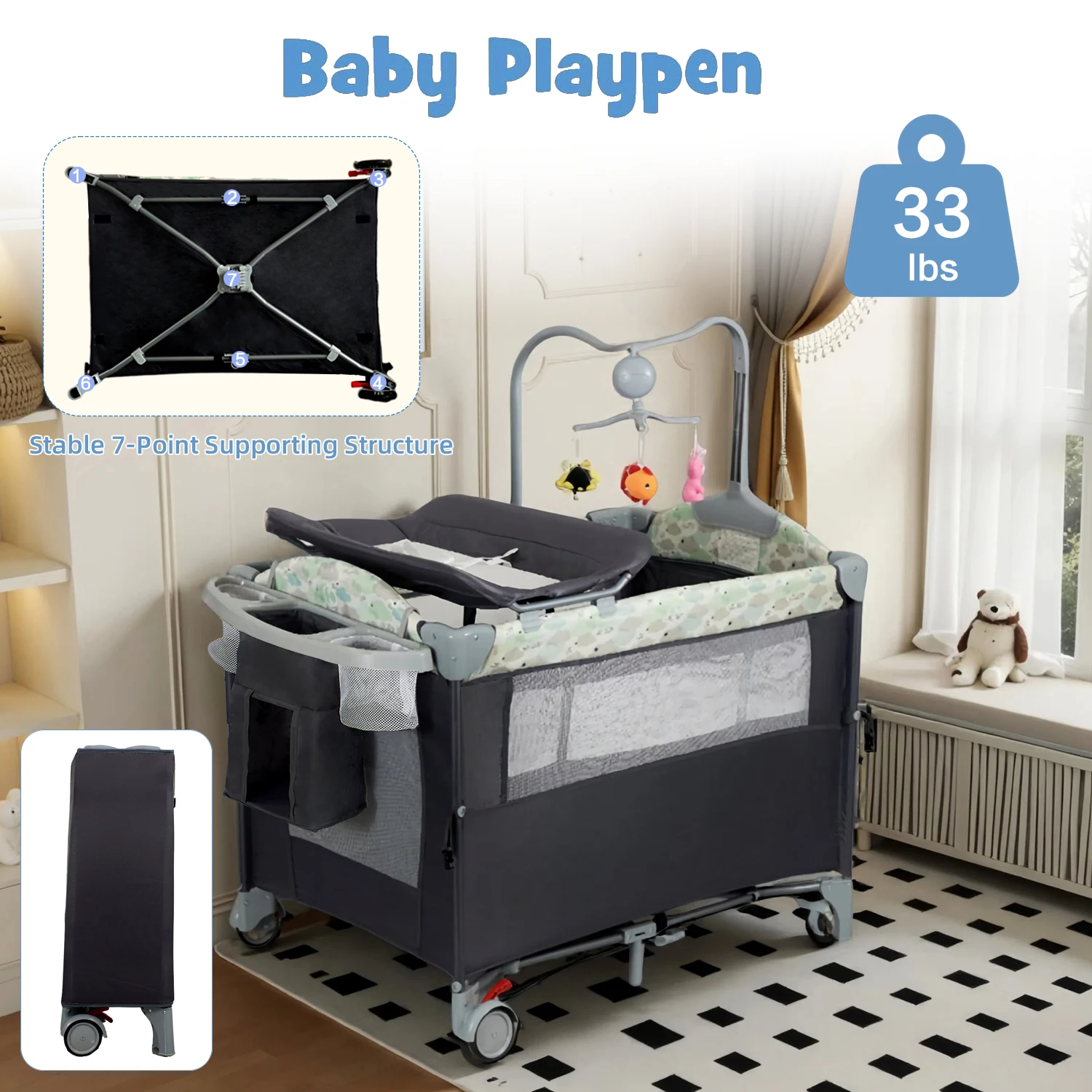 This Pack n Play portable playard is designed to provide a safe and comfortable space for babies from newborn to toddler stages. It features a removable bassinet that offers a cozy sleeping area for infants. The built-in changing table adds convenience for quick and easy diaper changes. Its multi-functional design makes it ideal for home use and travel. The sturdy frame ensures stability and reliable support. Mesh sides promote airflow and allow parents to easily monitor their baby. The folding design allows quick setup and compact storage. Lightweight construction makes it easy to transport for trips or visits. Durable materials ensure long-lasting performance for daily use. This portable nursery playpen is a practical and versatile solution for growing families.